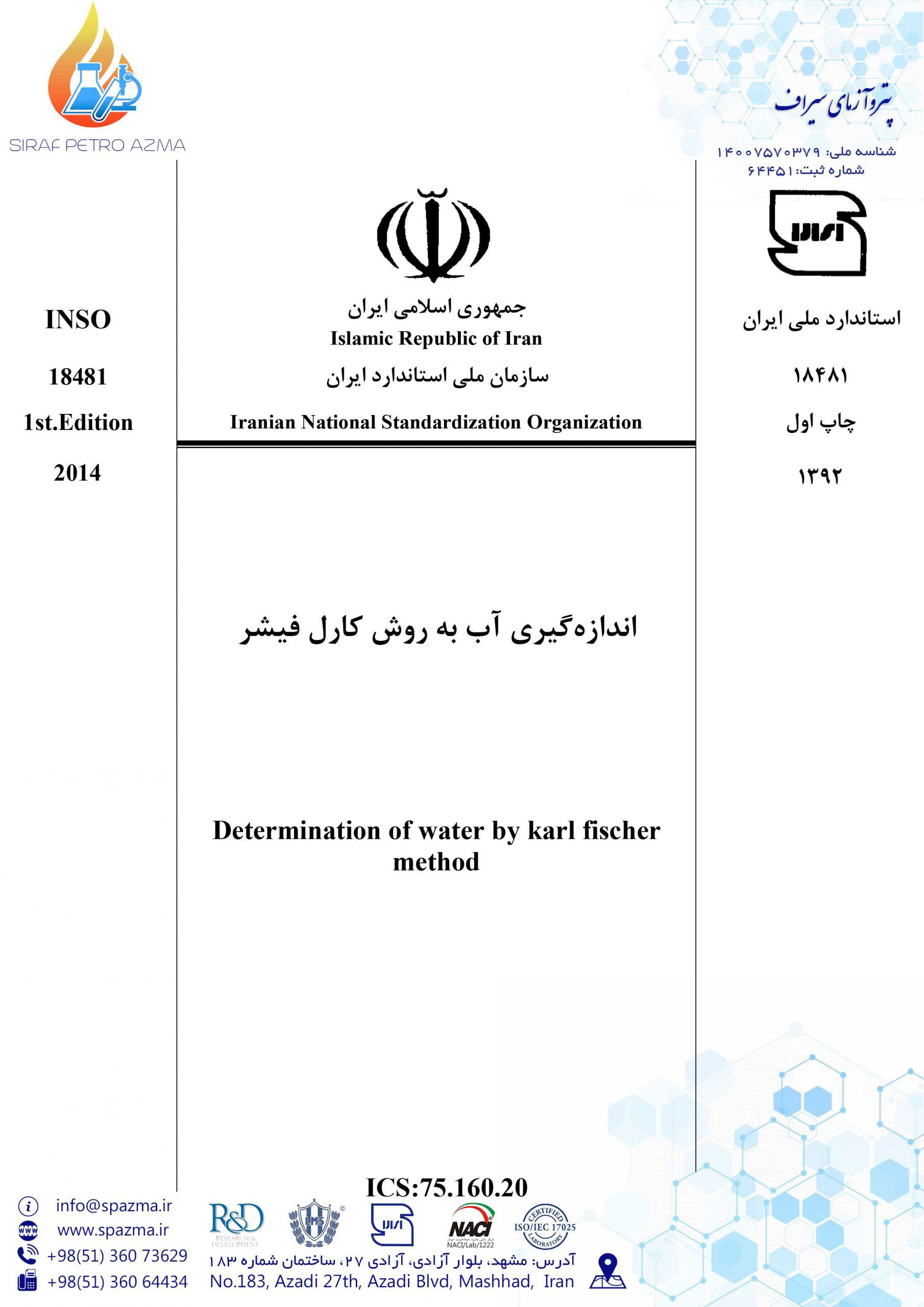 استاندارد ملی اندازه گیری آب به روش کارل فیشر