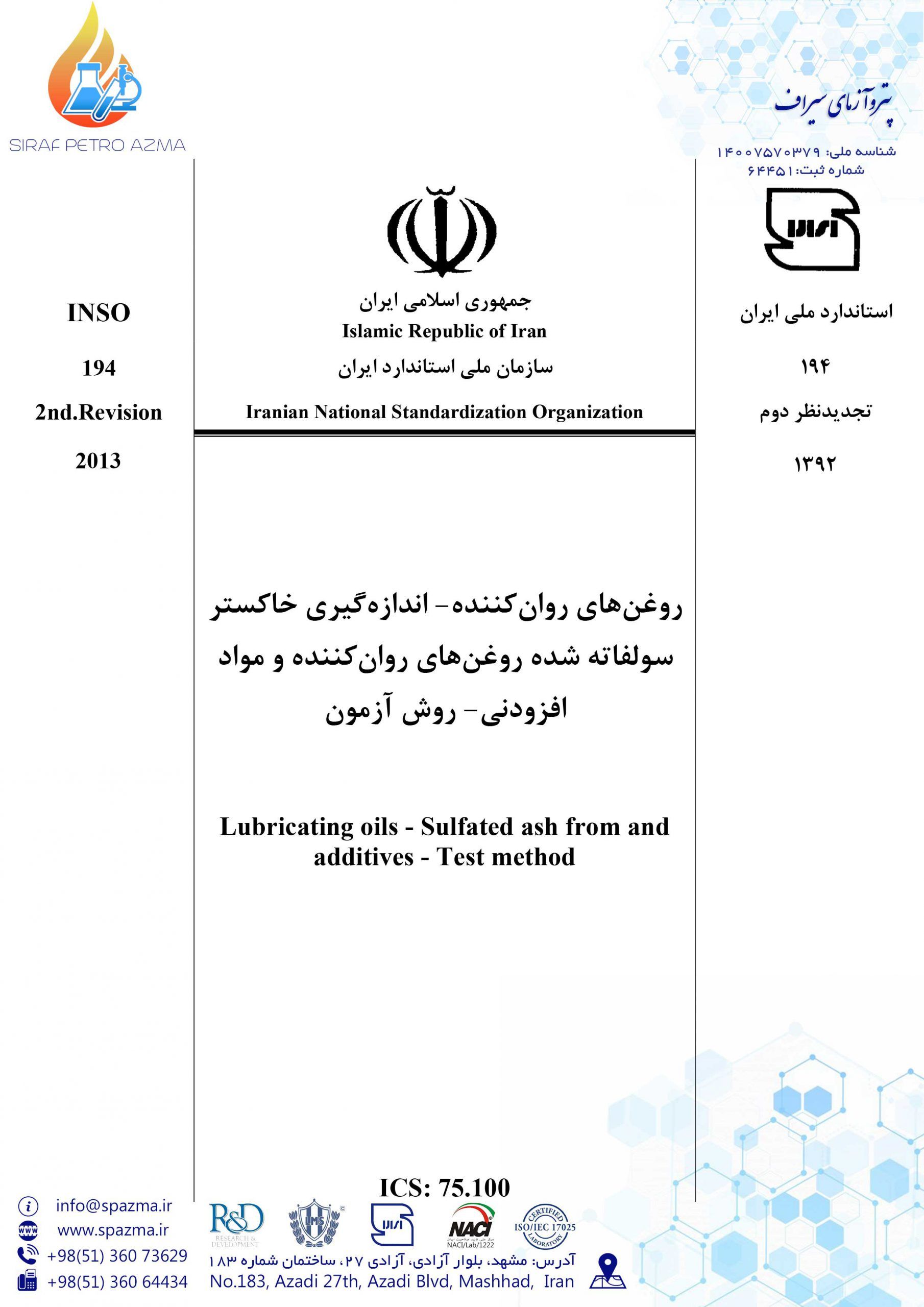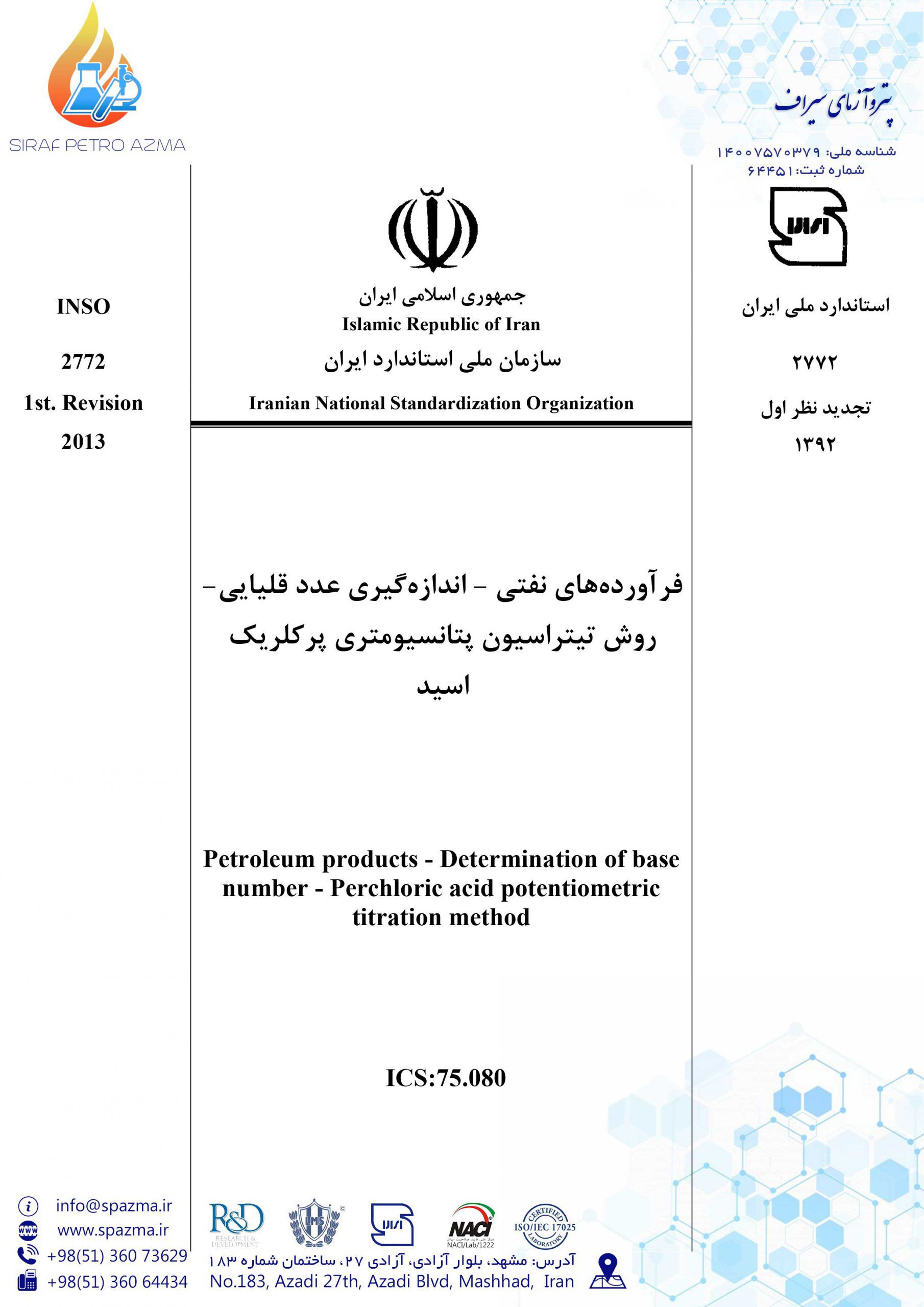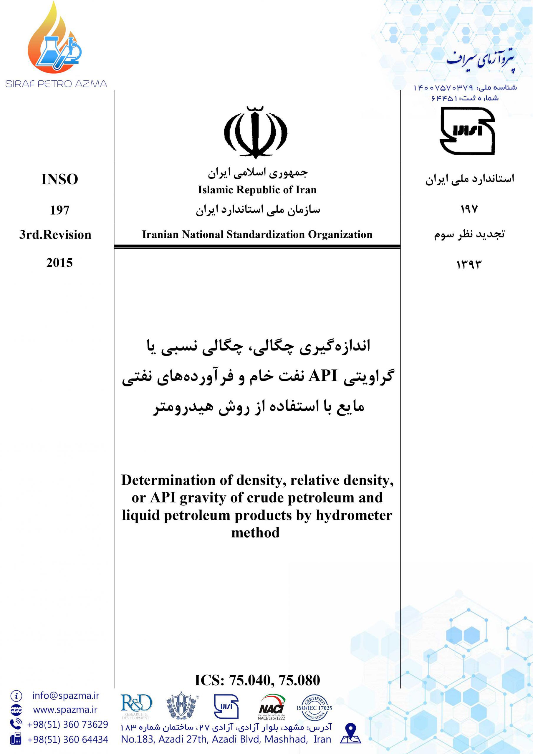 مراجع استاندارد آزمایشگاه پتروآزمای سیراف
