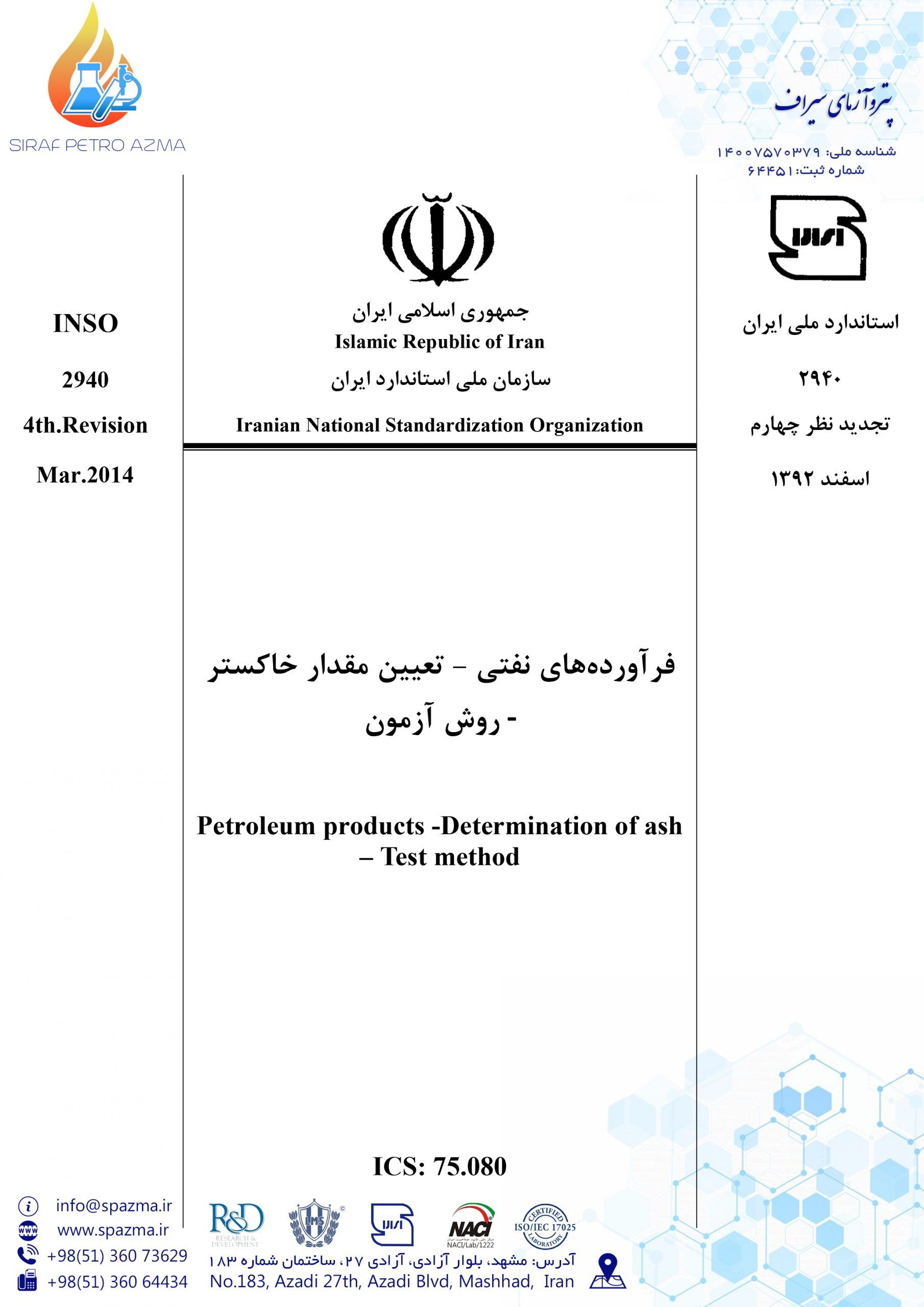استاندارد ملی تعیین مقدار خاکستر