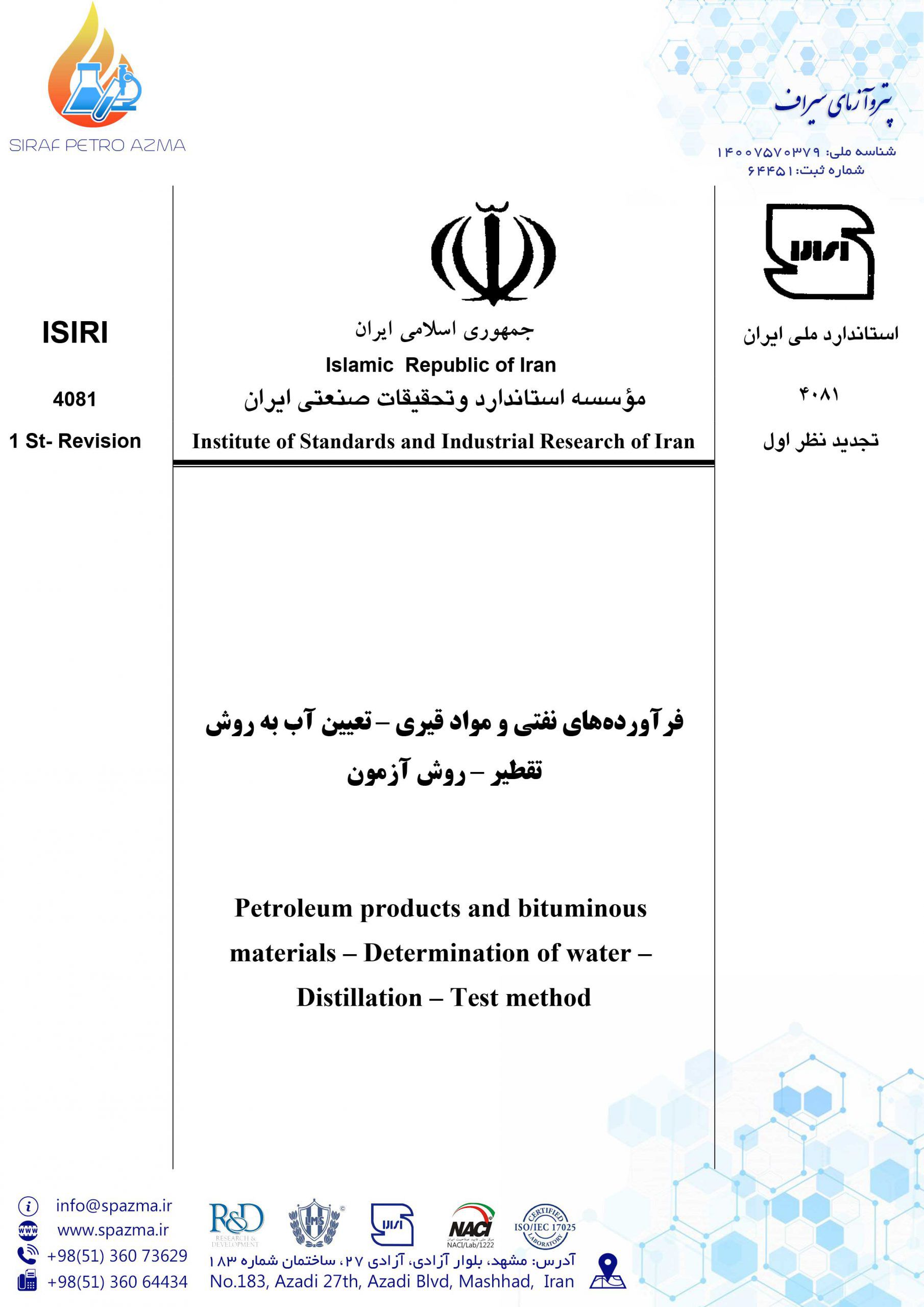 استاندارد ملی تعیین آب به روش تقطیر