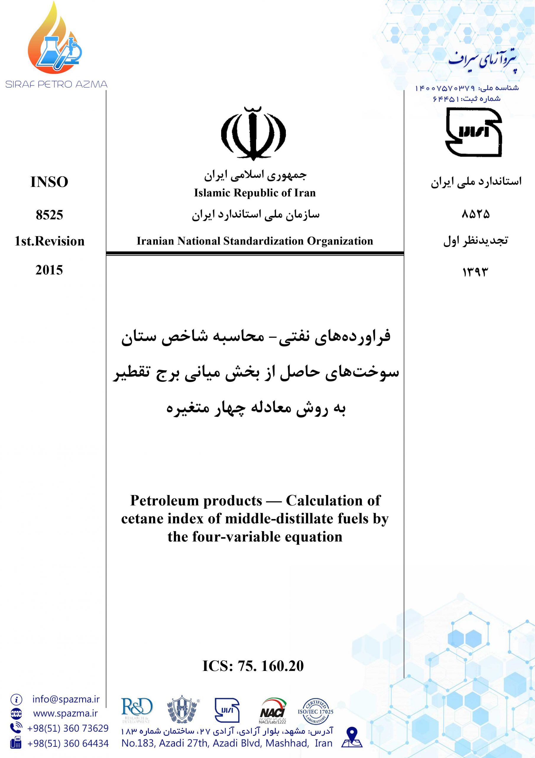 فراورده های نفتی-محاسبه شاخص ستان سوخت های حاصل از بخش میانی برج تقطیر به روش معادله چهار متغیره